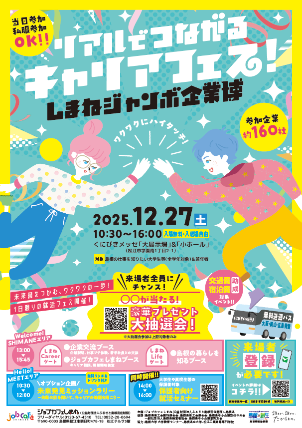 対 象:島根の仕事を知りたい大学生等(全学年対象)&若年者